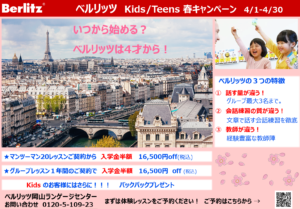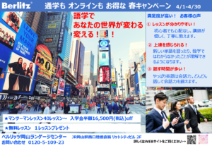 ベルリッツ岡山 4月のキャンペーンをお知らせします。
